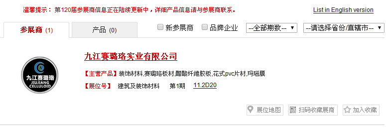 九江賽璐珞將于十月十五日至十九日參加第120屆廣交會(huì),這將是我司近幾年連續(xù)多次獲得江西交易團(tuán)分配的參展名額,我司將會(huì)再接再厲,再創(chuàng)佳績!